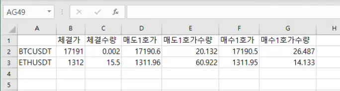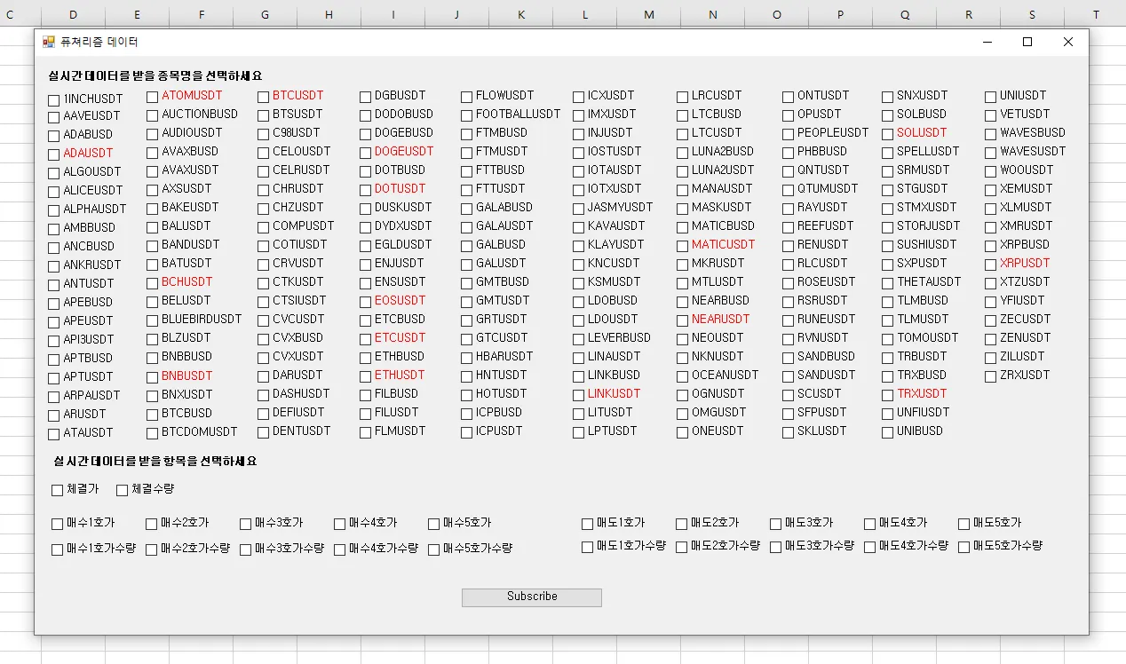 암호화폐 거래소의 데이터를 엑셀에서 실시간으로 받아보기 위함입니다.