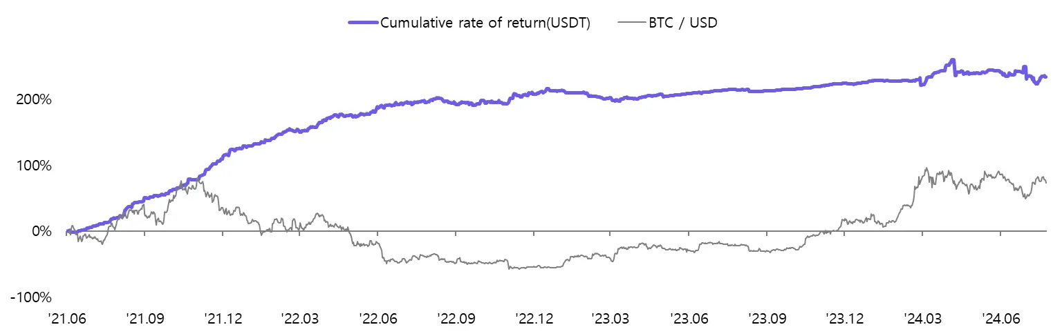 * Daily compounded cumulative return in USDT, calculated with reinvestment considered